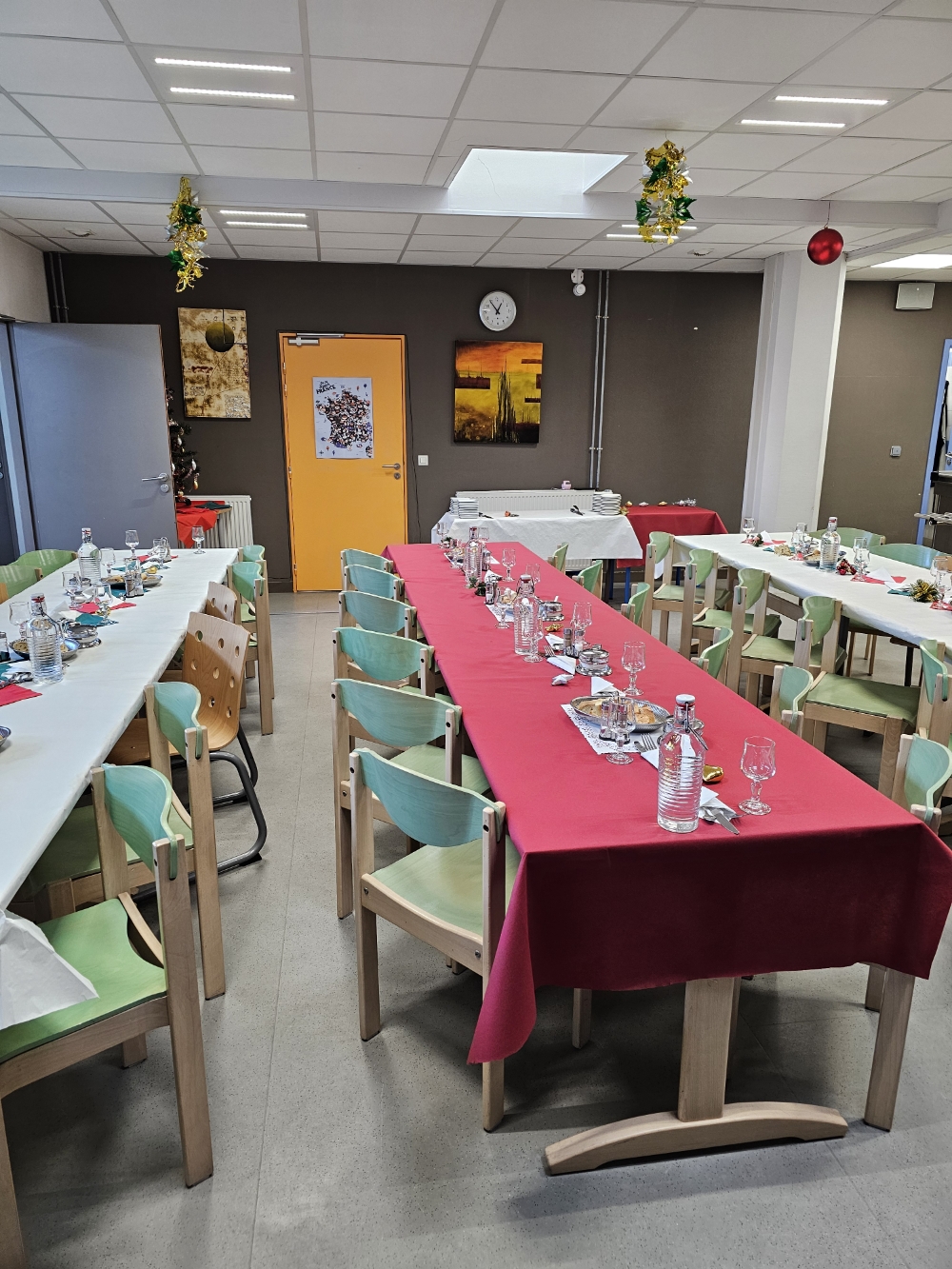 Repas de Noël au restaurant pédagogique du lycée Les Canuts le lundi 8 décembre 2025.